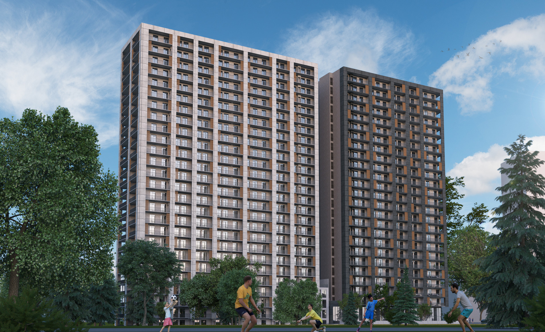 Archi Akhmeteli Block B is a 23-storey building of the residential complex located in the central location of Gldani, 5 minutes' walk from the metro station Akhmeteli. The project includes commercial space and 5000 sq.m. green yard, where a sports and children's playground will be located. High-quality HPL panels are used for facade cladding. The residential house is built with environmentally friendly, energy-efficient building blocks of the German brand YTONG, which maintains the temperature and saves energy by 40%.