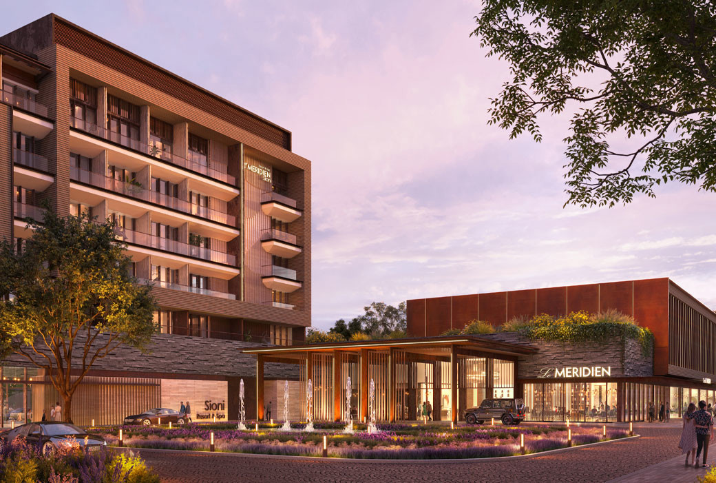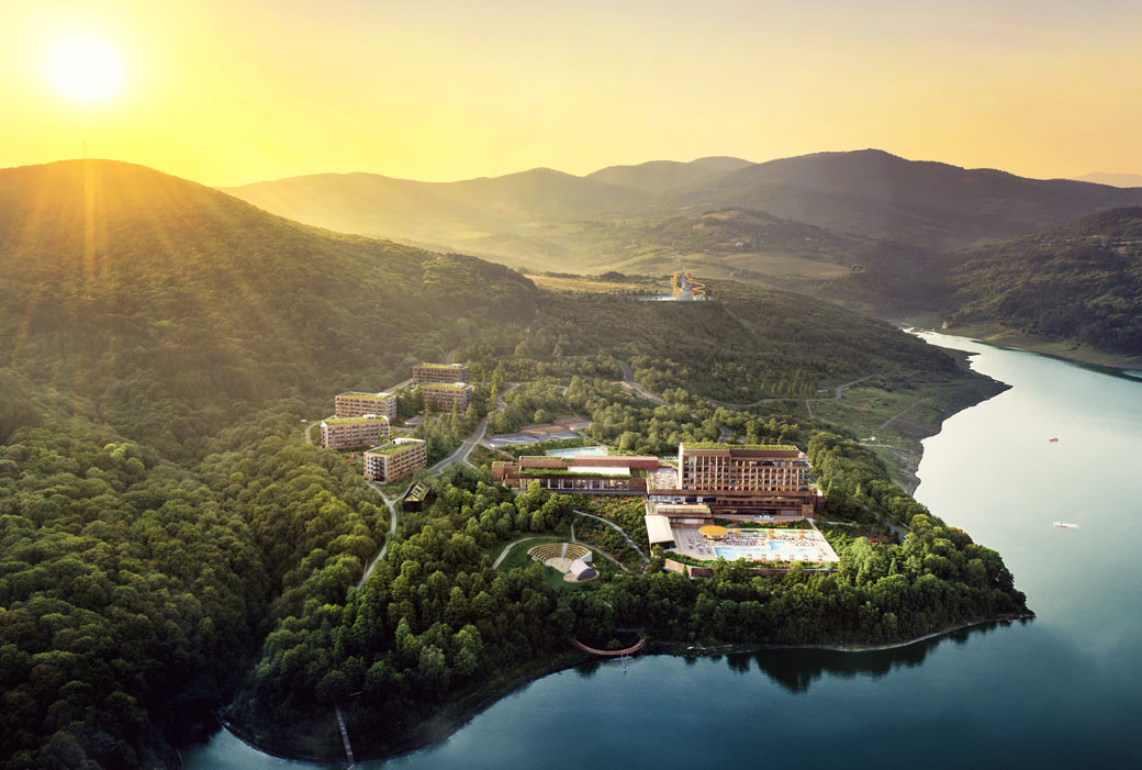 The first block of the elite resort complex Le Meridien Sioni Lake Resort & Spa consists of a five-story apartment hotel with 75 luxury, art, and modern studio apartments. The design was developed by the Spanish company Chapman Taylor Madrid studio. Like the first block, it employs energy-efficient, eco-friendly Ytong blocks, decorative wooden panels, decorative plaster, and glass railings for its unique exterior.