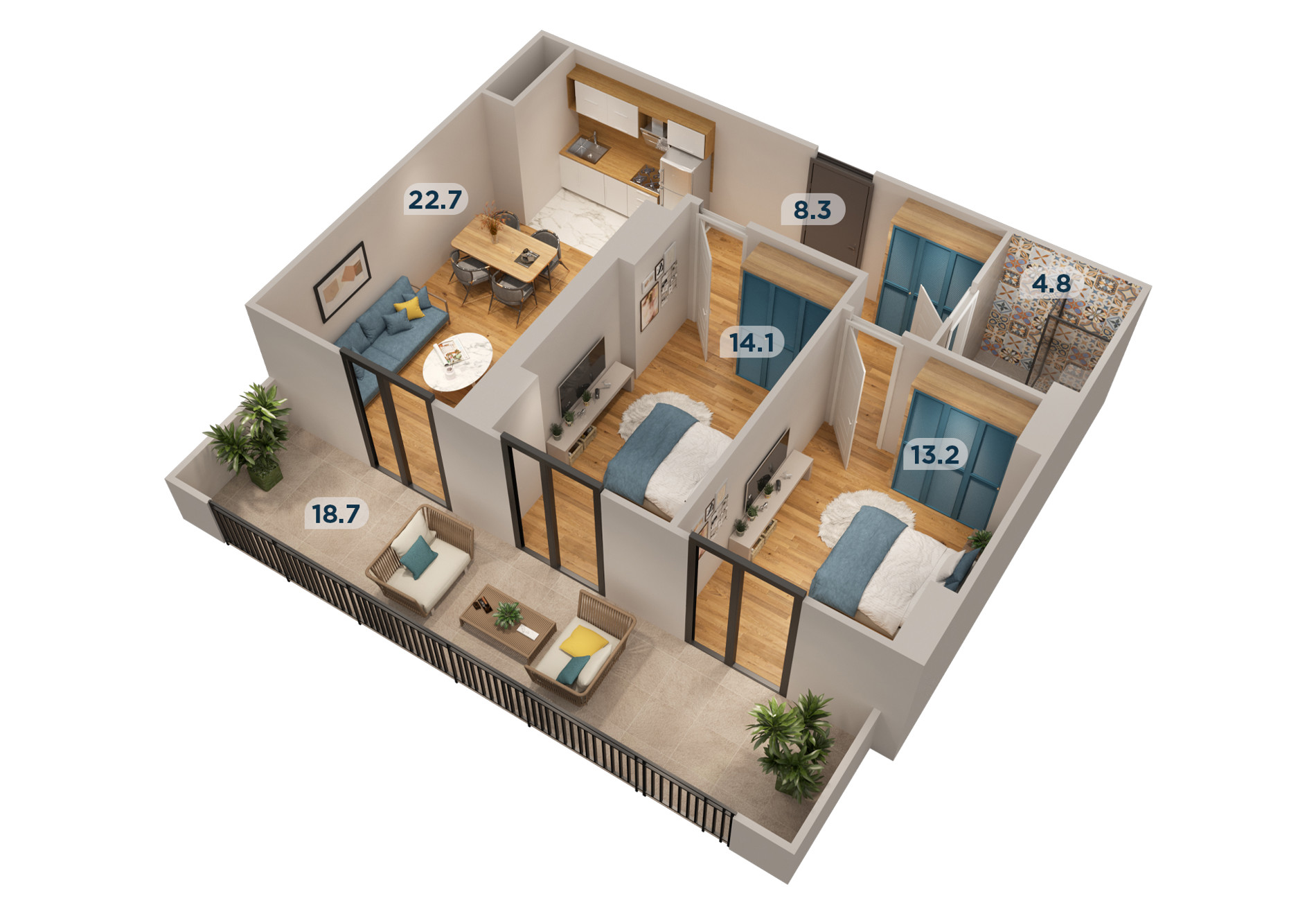 Archi Akhmeteli complex is located in a central location in Gldani, 5 minutes' walk from the "Akhmeteli" metro station. The project has a commercial space and 5000 sq.m. green yard, where sports and children's playground will be located. Archi Akhmeteli complex is tailored to the comfort of each resident. Premium quality elevators will be installed in residential buildings. The project is built with environmentally friendly, energy-efficient building blocks of the German brand YTONG, which maintains the temperature and saves energy by 40%, which reduces utility bills.