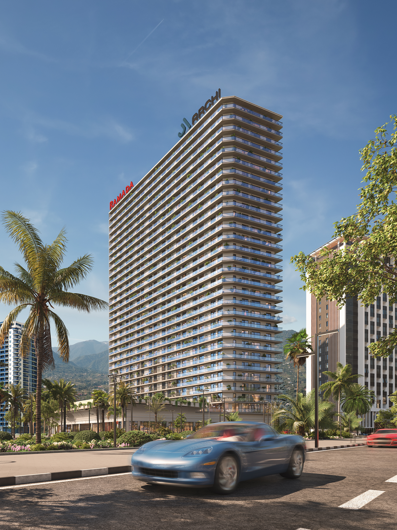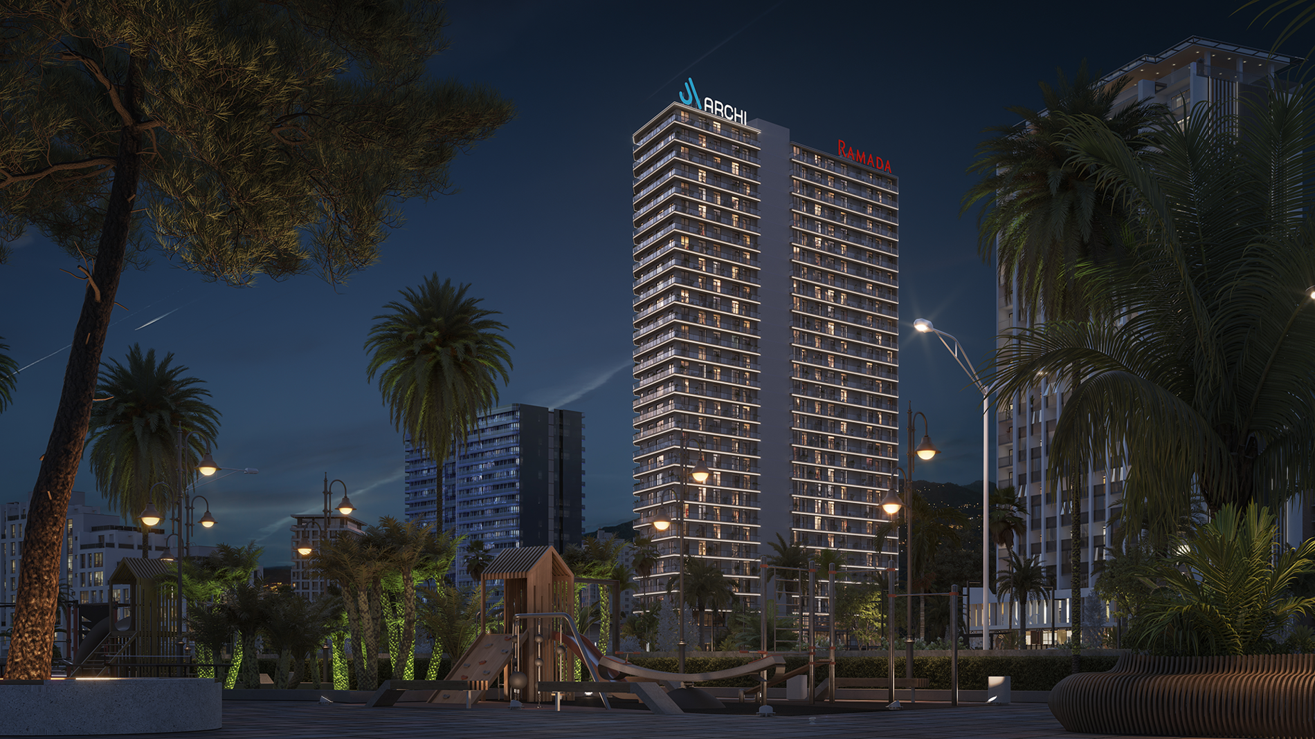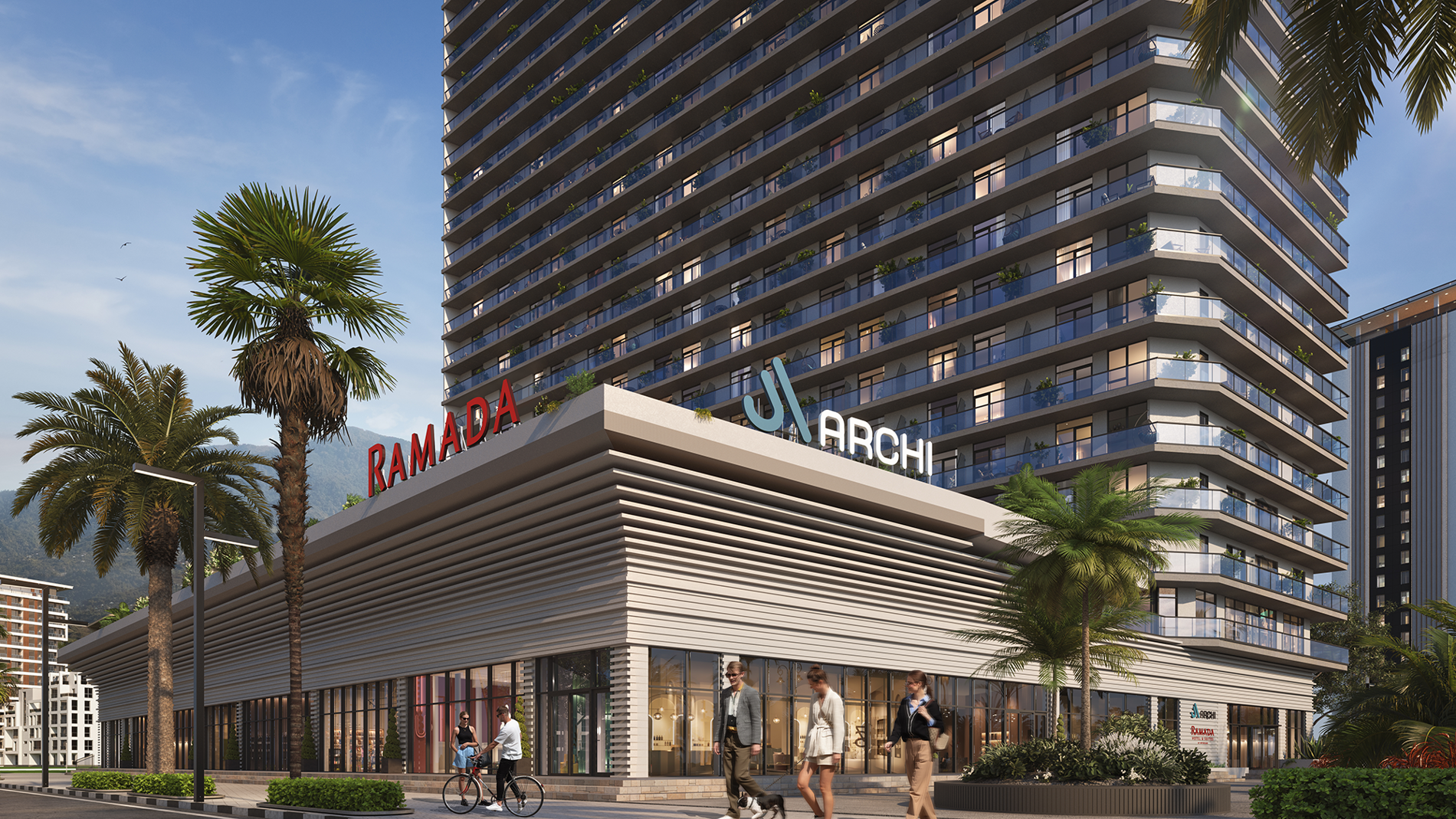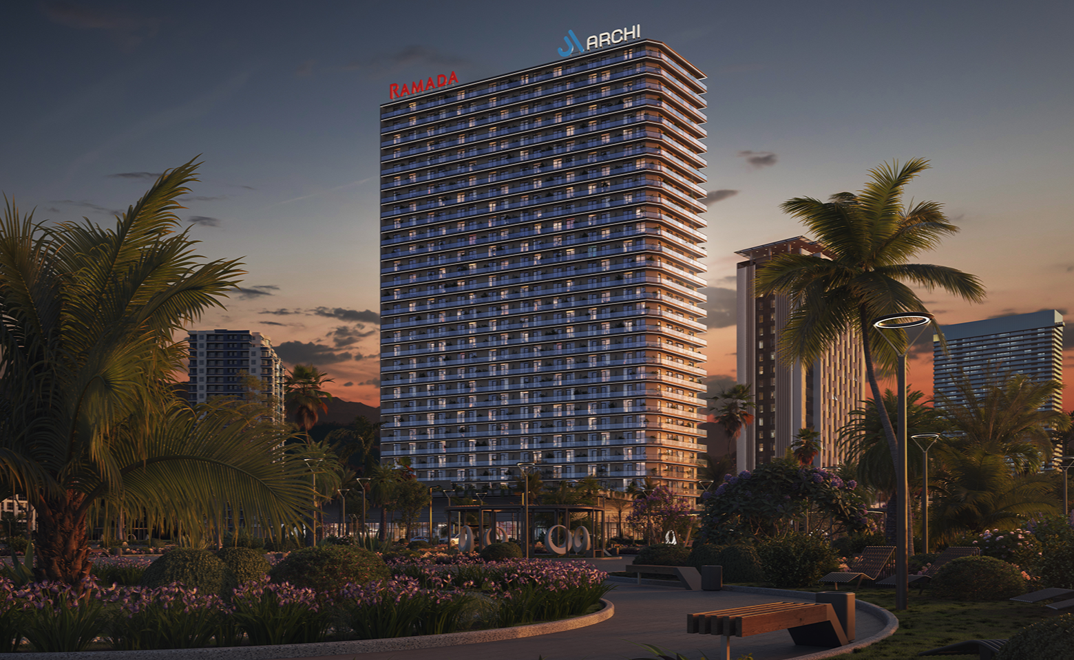 არქი რამადა ბათუმი ევროპული სტანდარტის მულტიფუნქციური აპარტოტელია, რომლის პარტნიორი Ramada Encore by Wyndham-ია, მსოფლიოში წამყვანი სასტუმროების ქსელის „ვინდჰემის“ ბრენდი. არქი რამადა ბათუმი გამორჩეულია, როგორც სამშენებლო მასალებითა და ინფრასტრუქტურით, ისე სასტუმროს მრავალფეროვანი სერვისებით. აპარტოტელში დაგხვდებათ საცურაო აუზი, სპა ზონა, სამორინე, რესტორანი, ბარი, ლაუნჯი, საბავშვო სივრცე, საკონფერენციო და ფიტნეს დარბაზი.