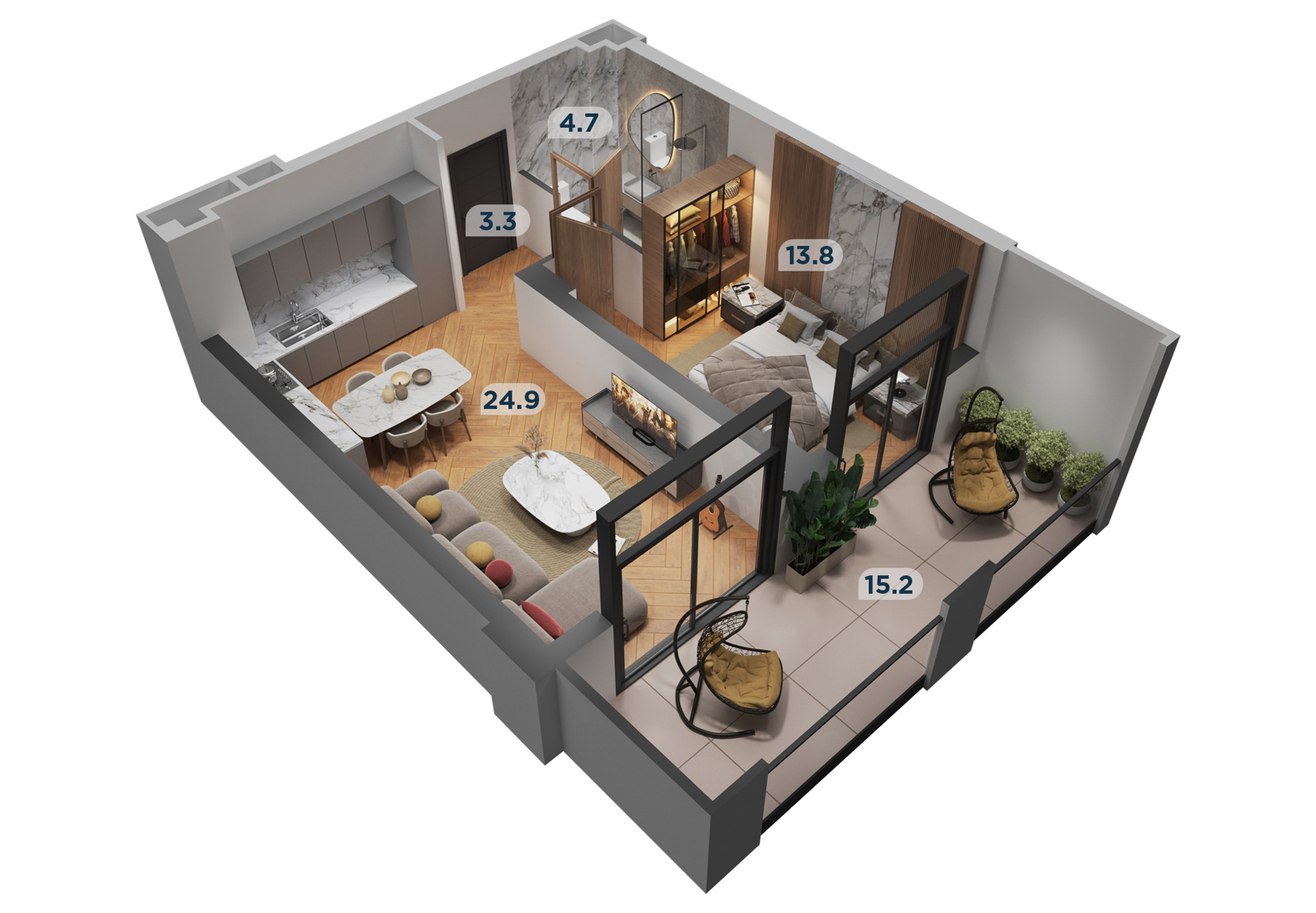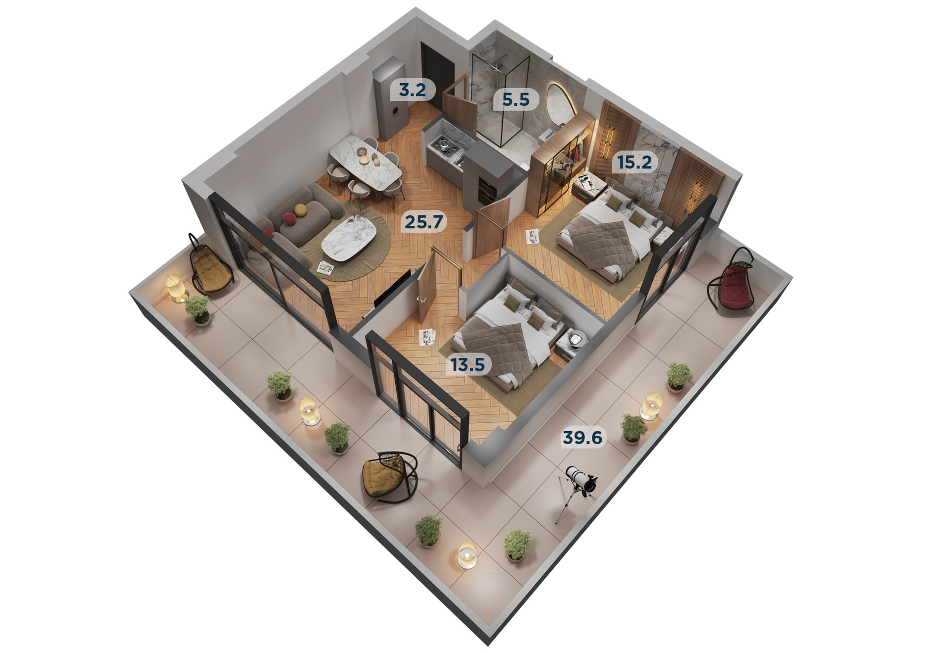 საცხოვრებელი კომპლექსის მშენებლობისას გამოიყენება უმაღლესი ხარისხის, ევროპული სტანდარტის, ეკოლოგიურად სუფთა და ენერგოეფექტური მასალები, მათ შორისაა, გერმანული ბენდის YTONG-ის ენერგოეფექტური სამშენებლო ბლოკი, რომელიც შენობაში ტემპერატურას ნებისმიერ სეზონზე ინარჩუნებს, გათბობასა თუ გაგრილებაზე 40%-ით ნაკლები ენერგია იხარჯება, რაც კომუნალურ ხარჯებს საგრძნობლად ამცირებს. საცხოვრებელი კომპლექსის ექსტერიერს დახვეწილს ხდის მინის მოაჯირები და უმაღლესი ხარისხის საფასადე მასალა ტერაკოტა, რომლის წარმოებაც გერმანიისა და პორტუგალიის ქარხნებში ხდება. ტერაკოტა ინარჩუნებს იერსახეს დიდი ხნის მანძილზე, ხანძარგამძლეა და გათვლილია უძლიერესი ქარის დატვირთვაზე, რაც მას საუკეთესო მასალად ხდის მაღალსართულიანი შენობების მოსაპირკეთებლად. კომპლექსის თანამედროვე და ესთეტიკური არქიტექტურა უნივერსიტეტის ქუჩაზე ურბანულ განვითარებას შეუწყობს ხელს.